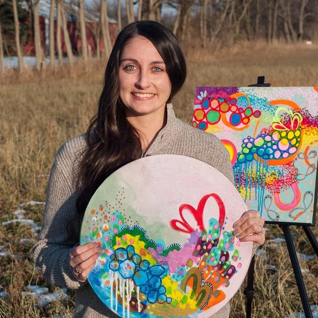 I'm Carly Van Eck, the face behind the vibrant, colorful, abstract acrylic paintings you’ll find here.